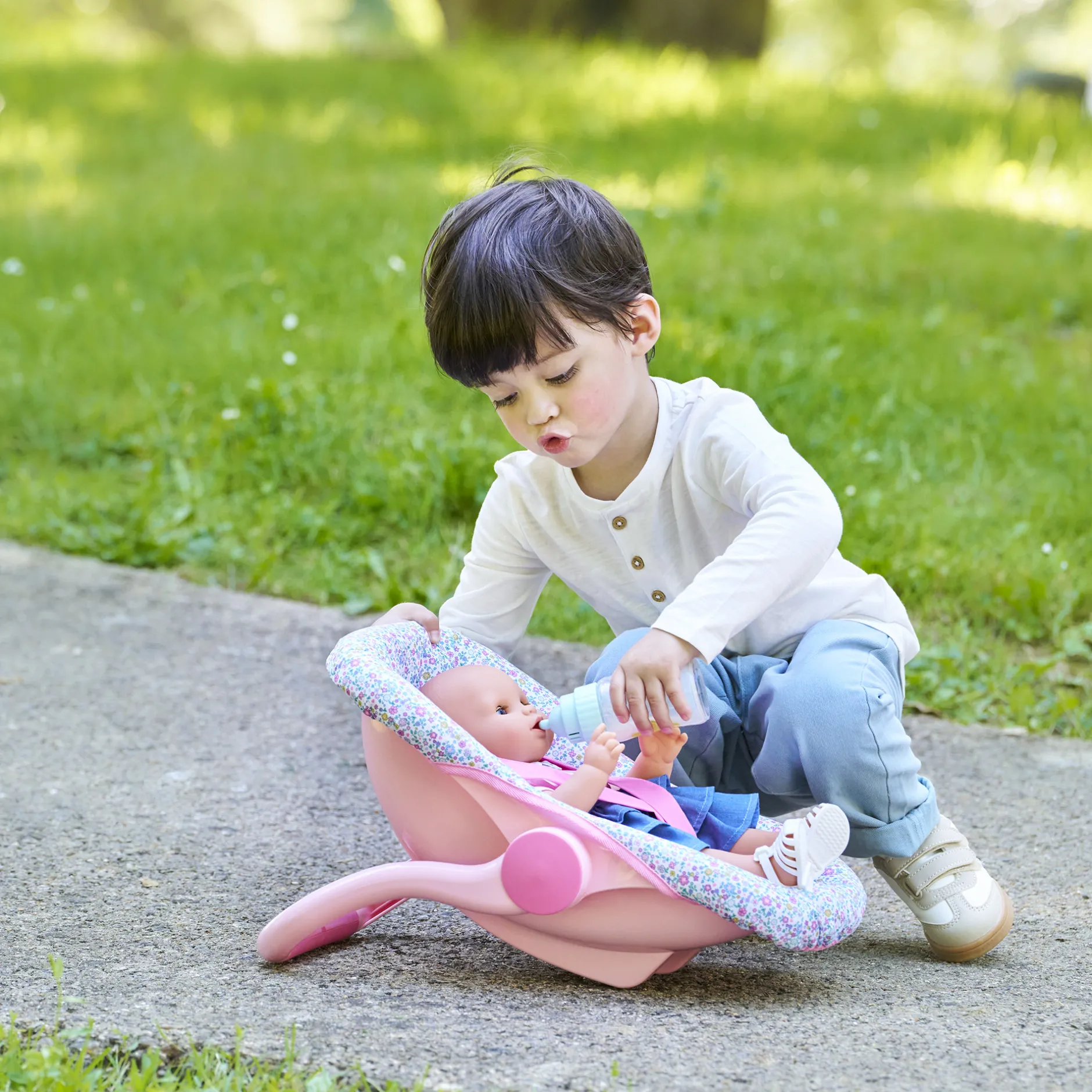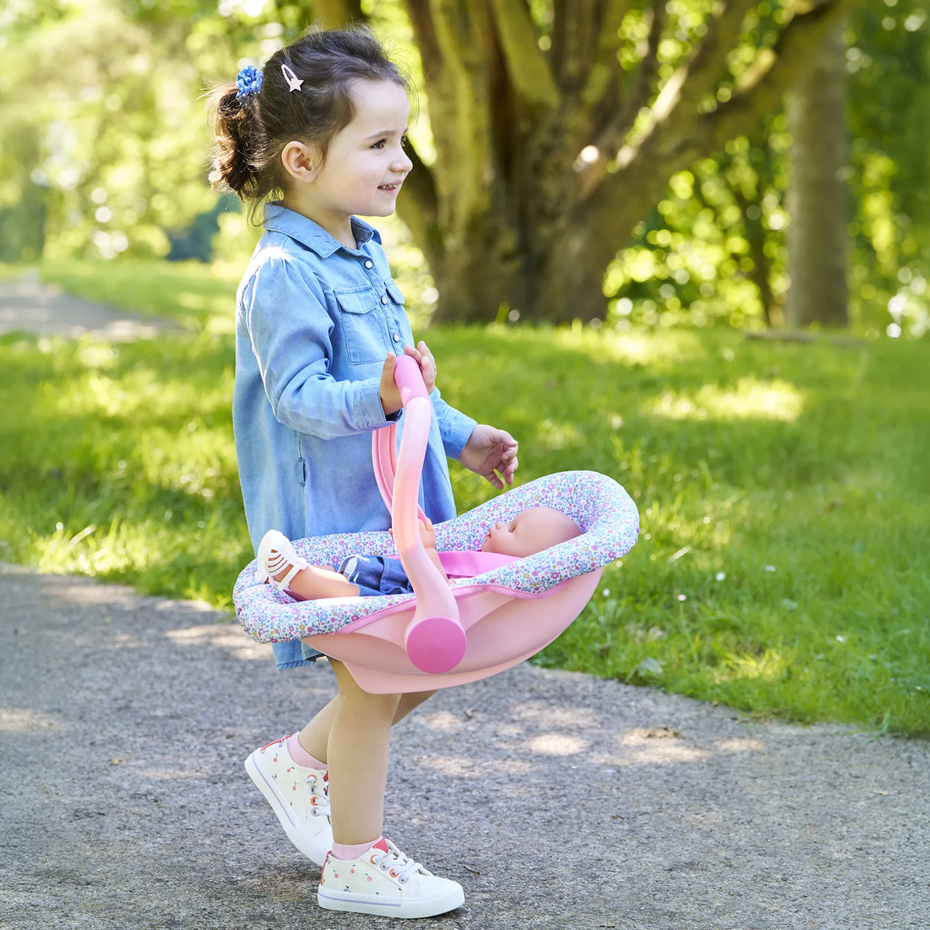 C’est l’heure de partir ! Le Porte-poupon Floral permet d’emmener partout les grands poupons de 36 à 42 cm.