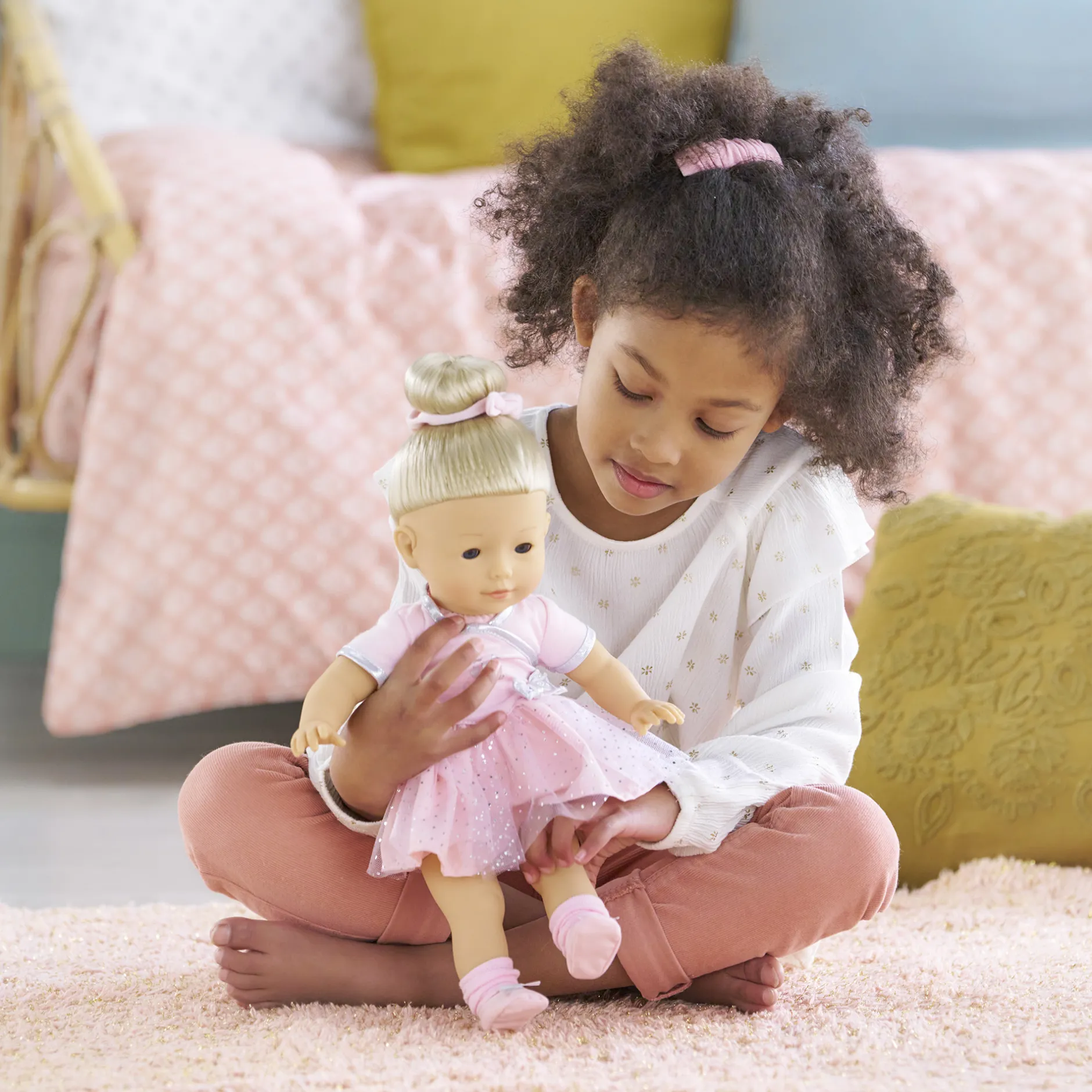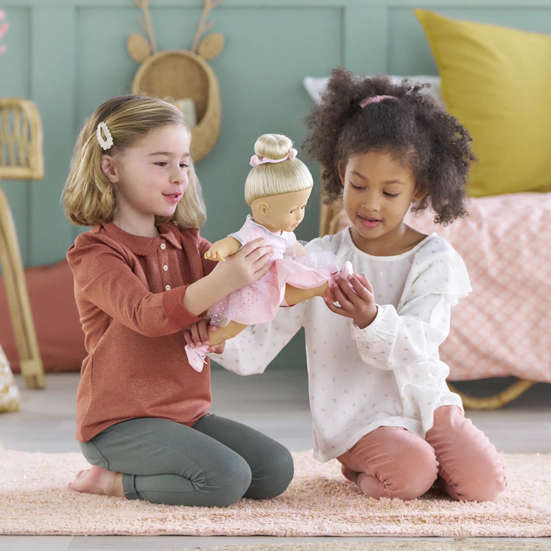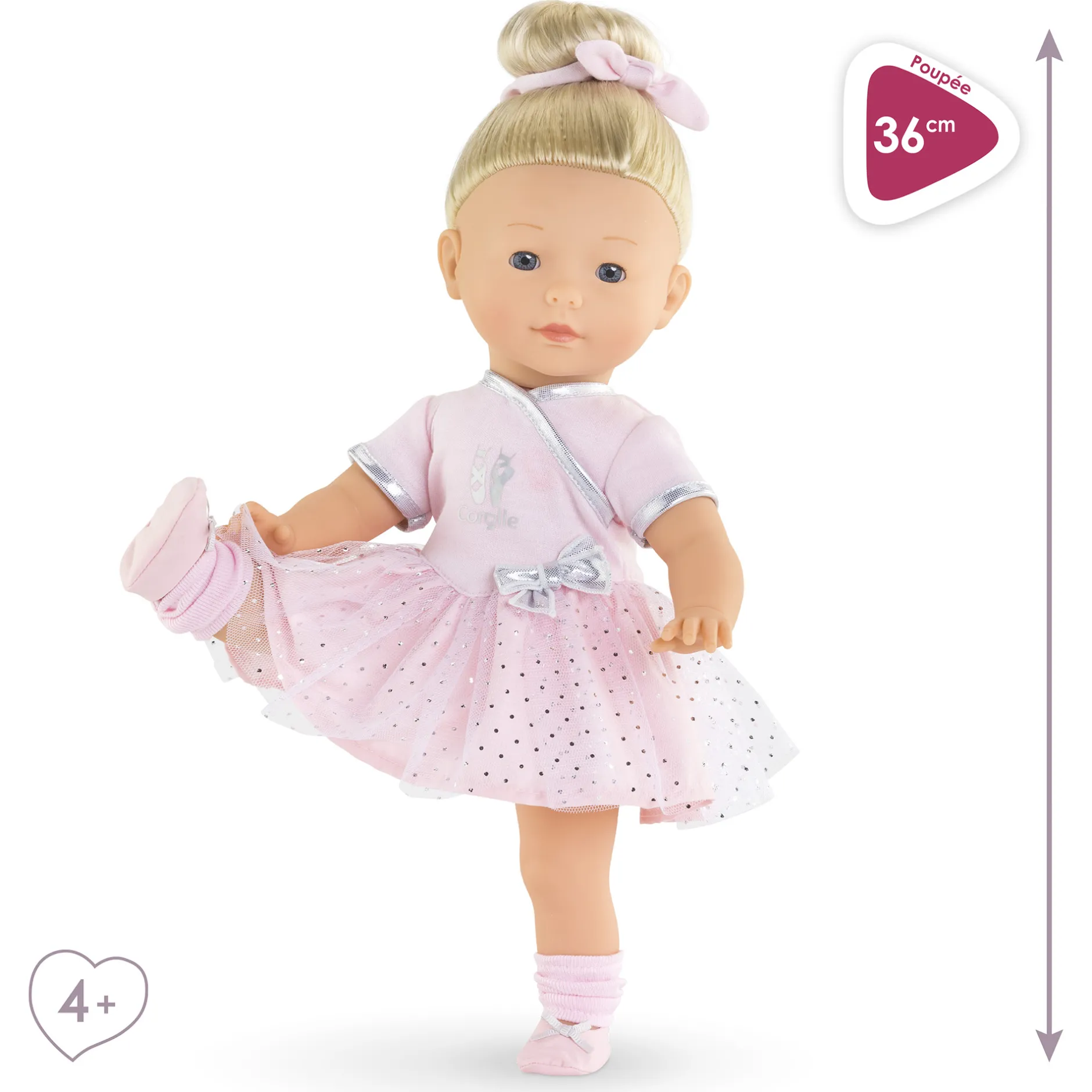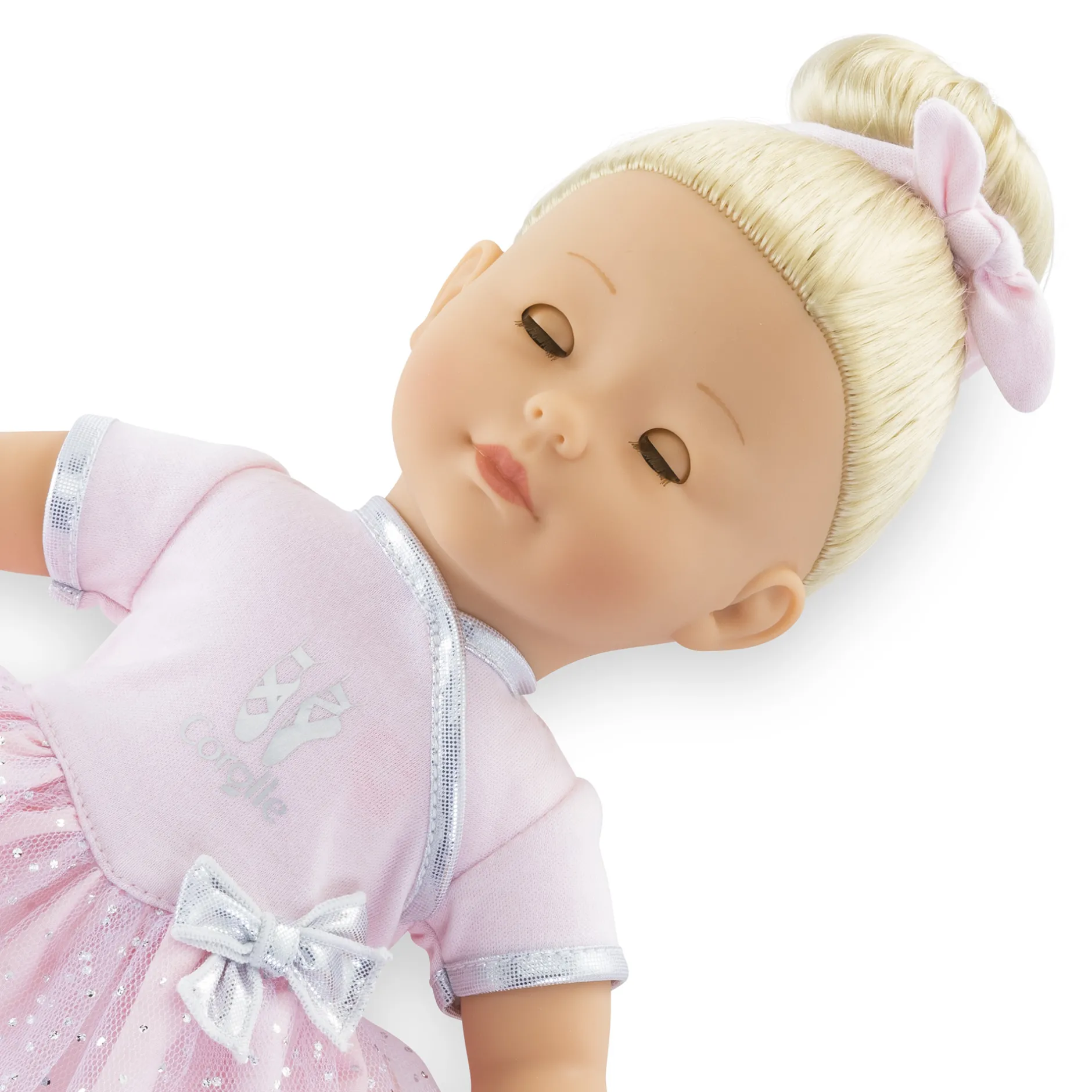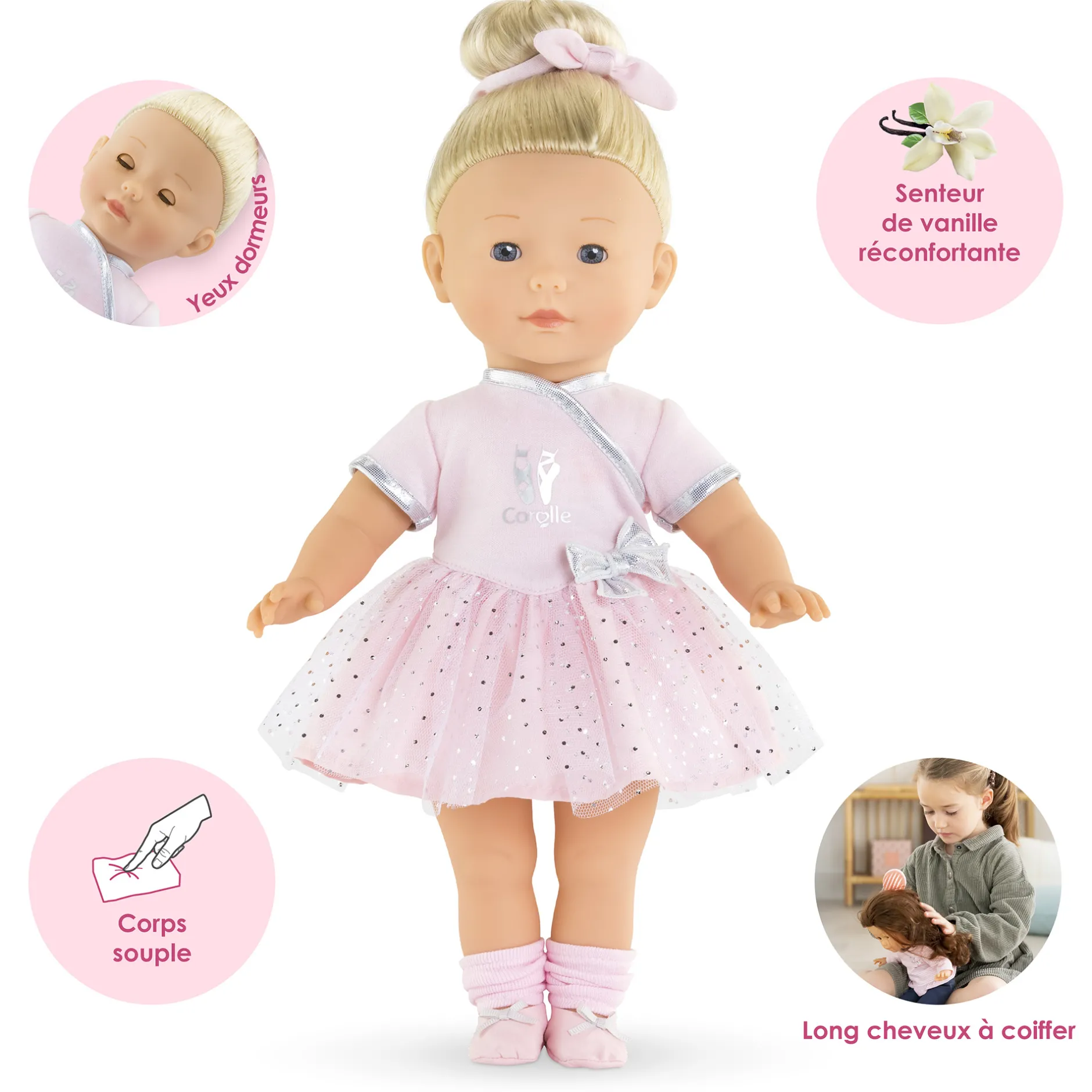 Constance Ballerine est une poupée ma Corolle de 36 cm, au corps souple « effet » sous-vêtements. Elle a de longs cheveux blonds lisses faciles à coiffer. La Poupée ma Corolle Constance Ballerine a la peau blanche et les yeux bleus. Son visage, ses bras et ses jambes, à la délicate senteur de vanille, sont en vinyle doux au toucher. Elle ferme les yeux quand on la couche sur le dos.
