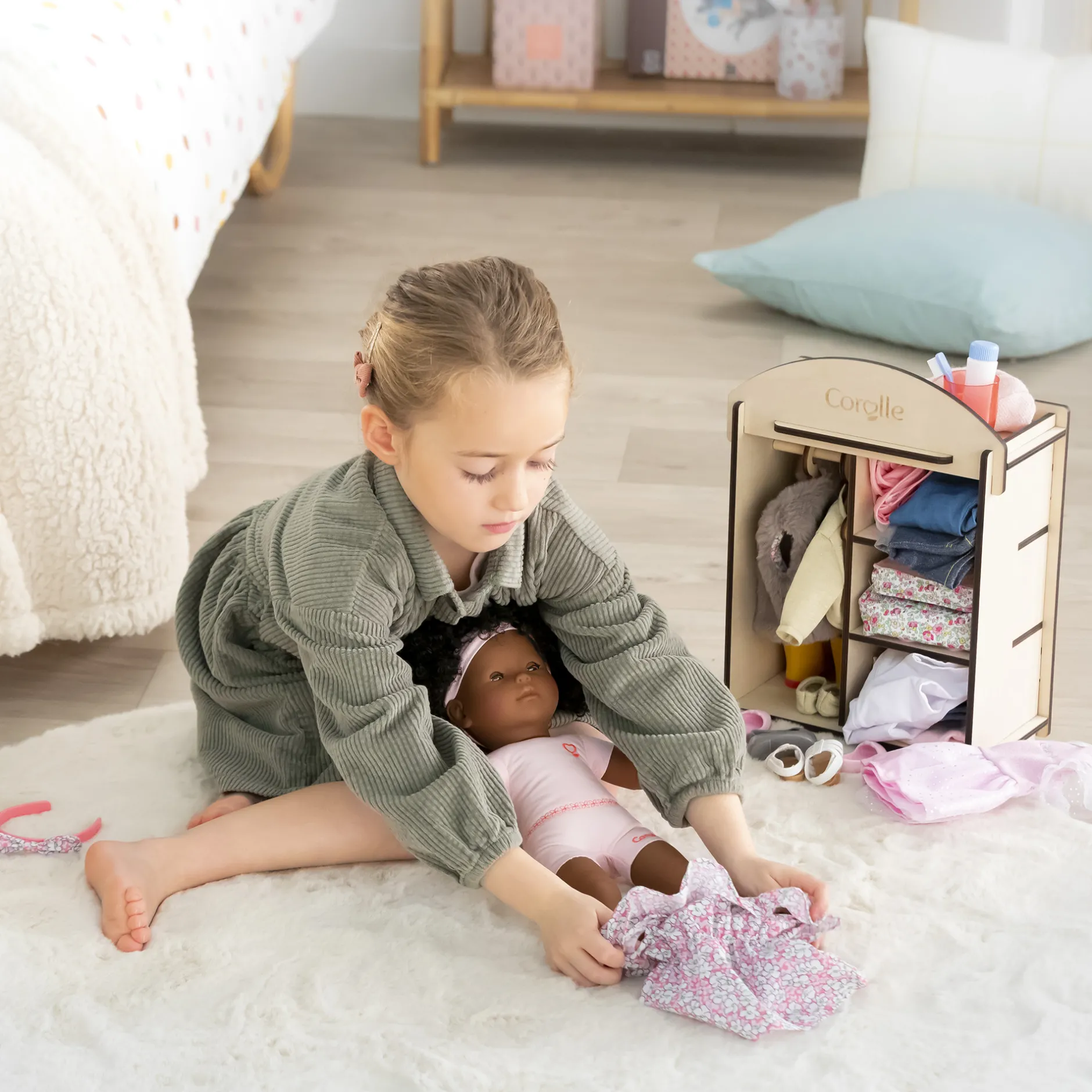 La poupée Pauline se personnalise à l’envi avec un mix and match de plus de 100 références de vêtements et accessoires.