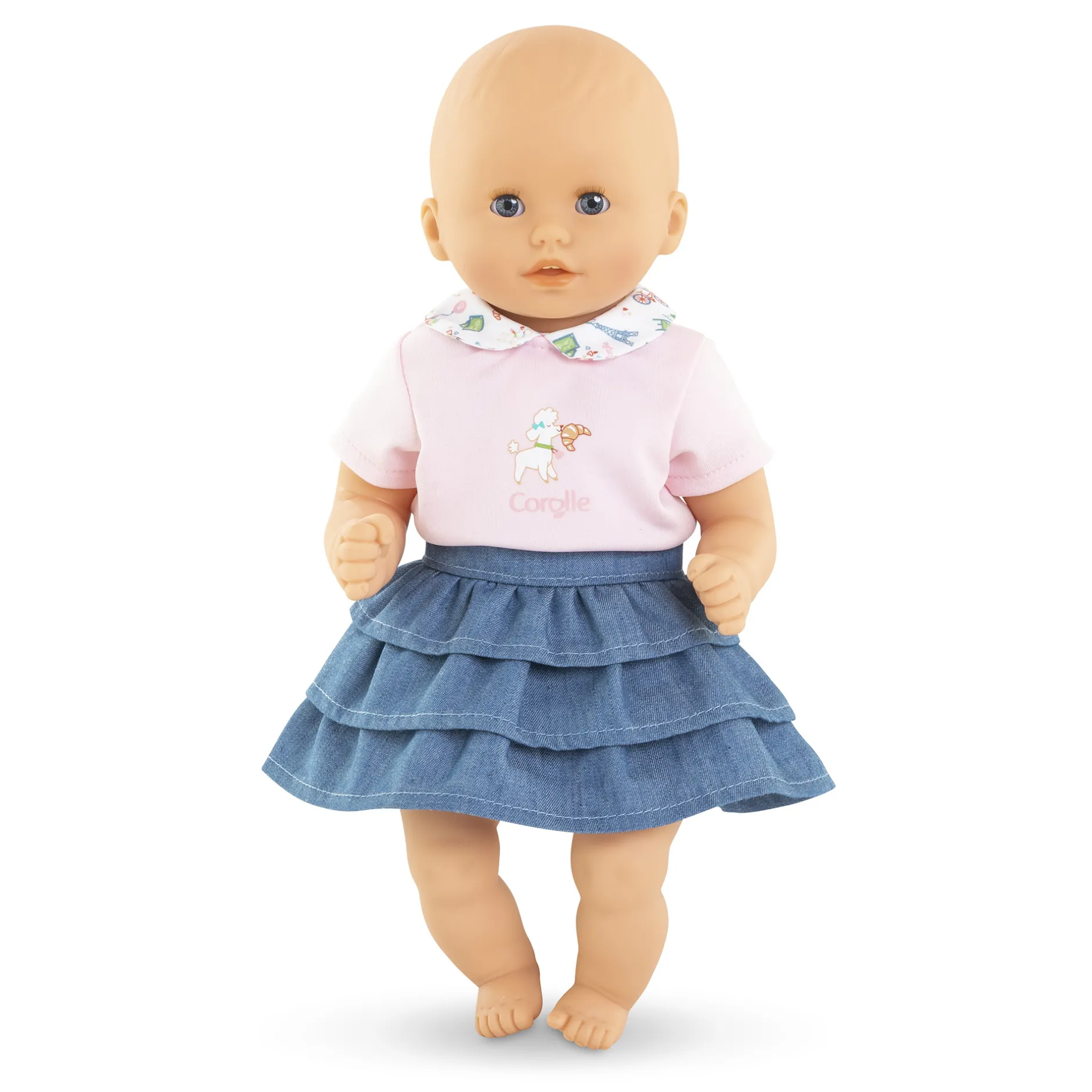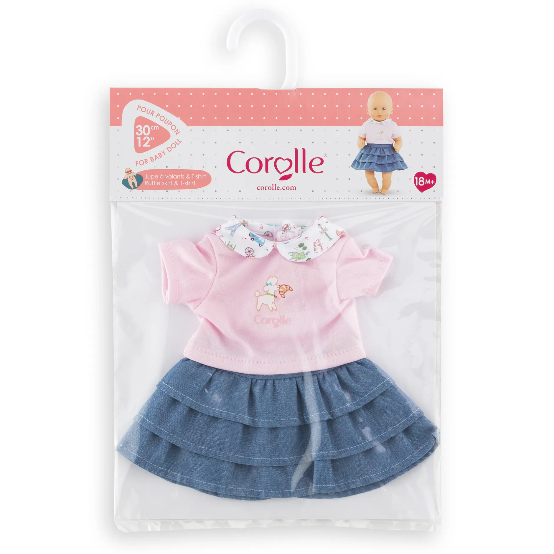 Pour une jolie tenue décontractée, l’ensemble T-Shirt et Jupe à volants Week-end à Paris est idéal pour les petits poupons de 30 cm mon premier poupon Corolle.
