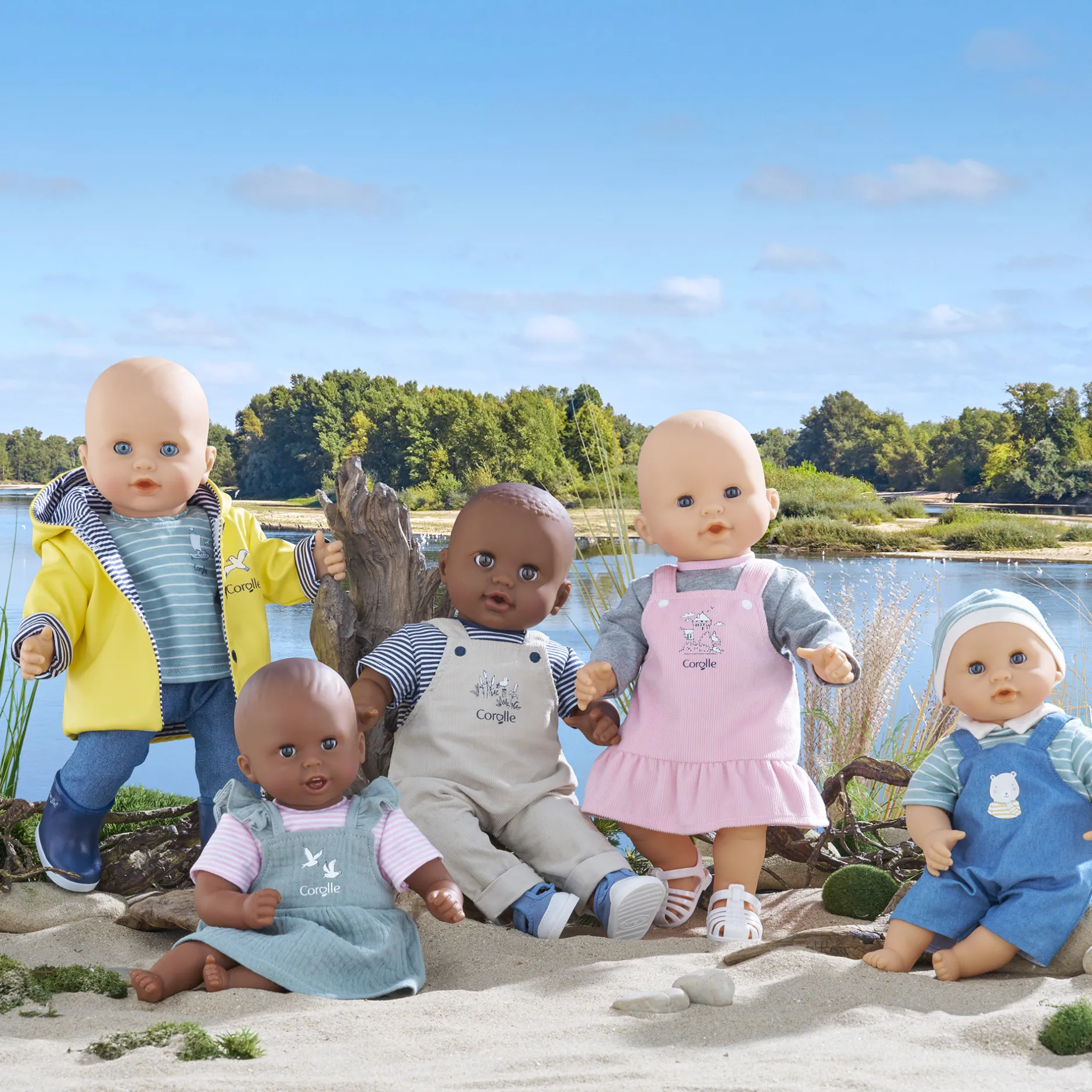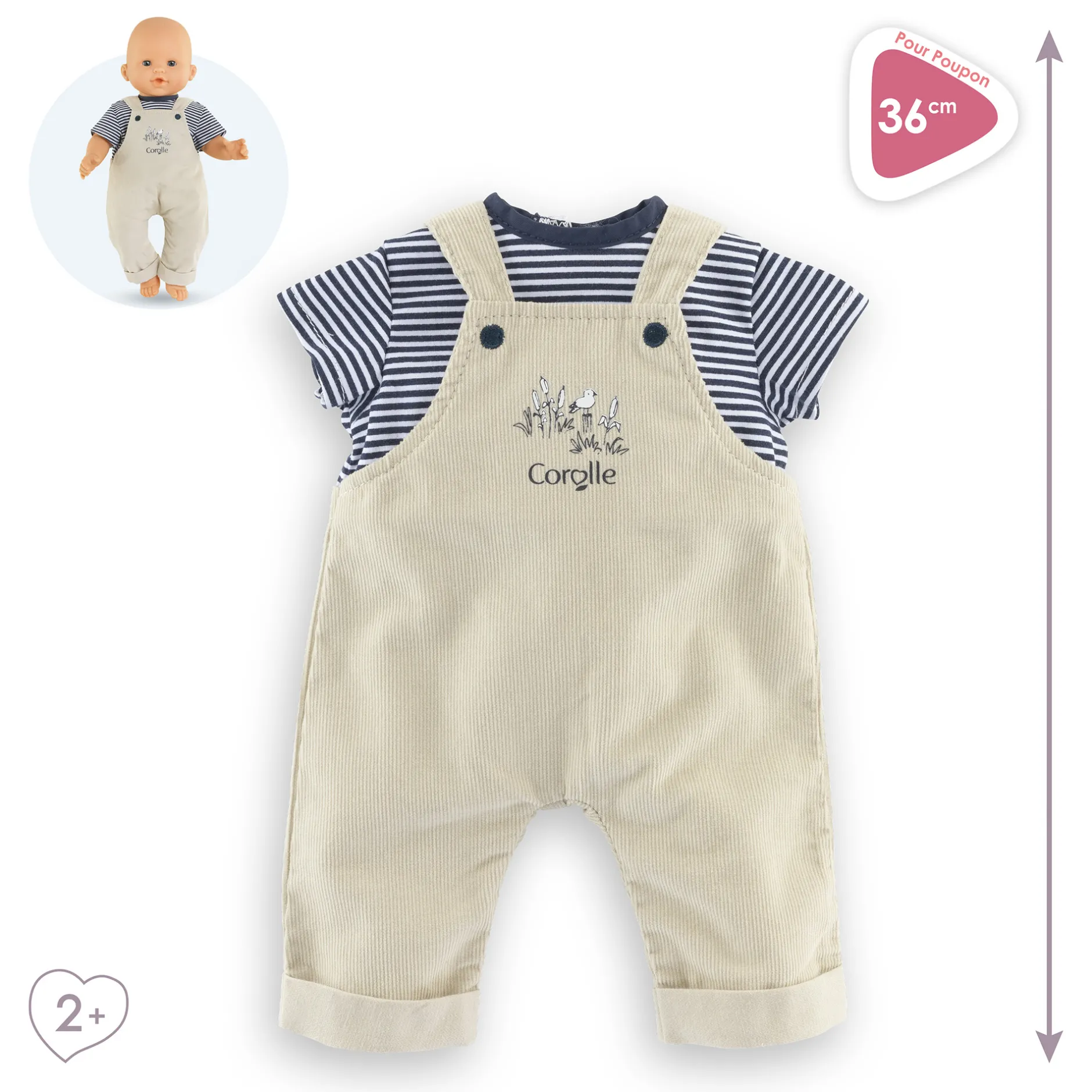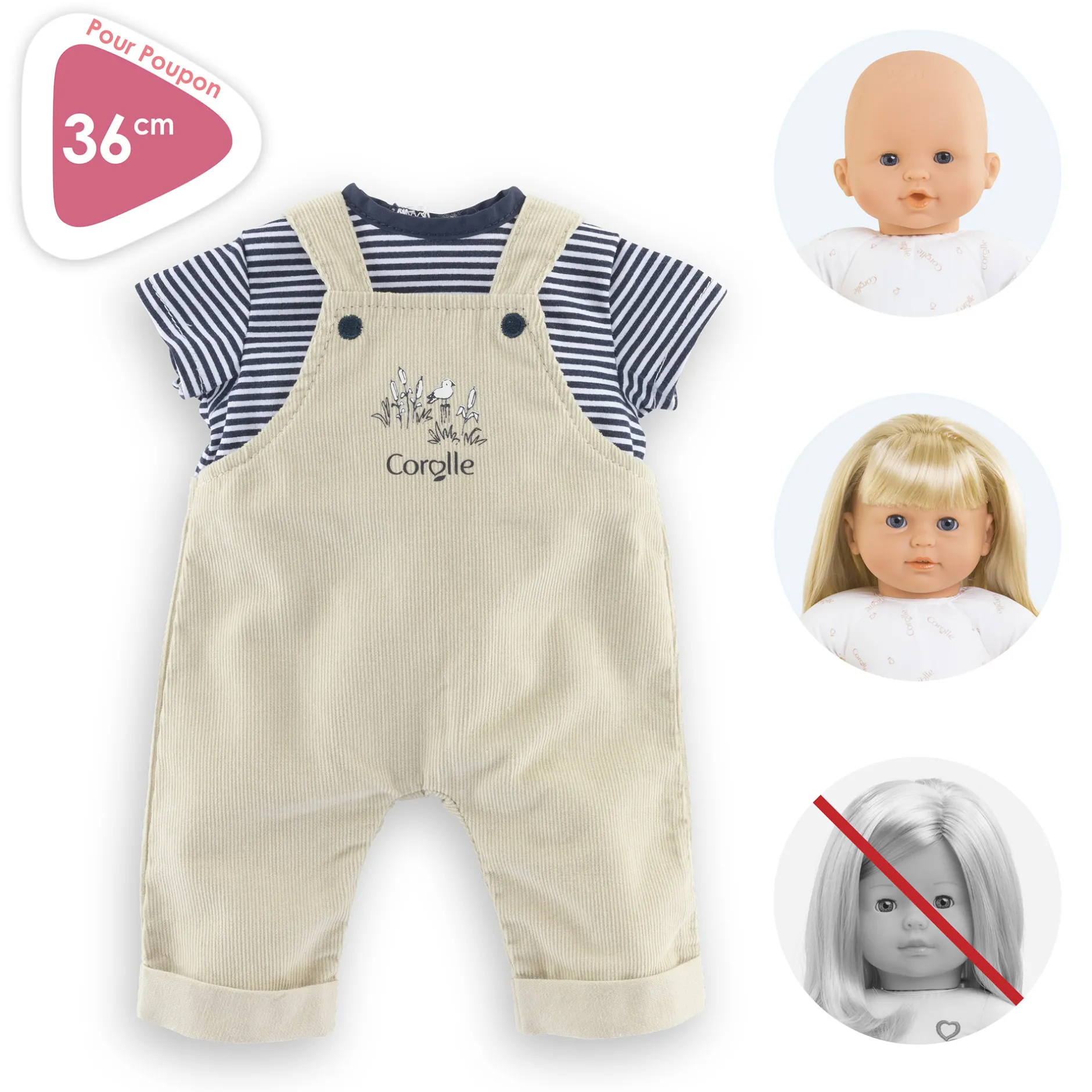 Pour une tenue décontractée, l’ensemble T-shirt et Salopette Écru Bords de Loire est le vêtement idéal pour les grands poupons de 36 cm de la gamme mon grand poupon Corolle.