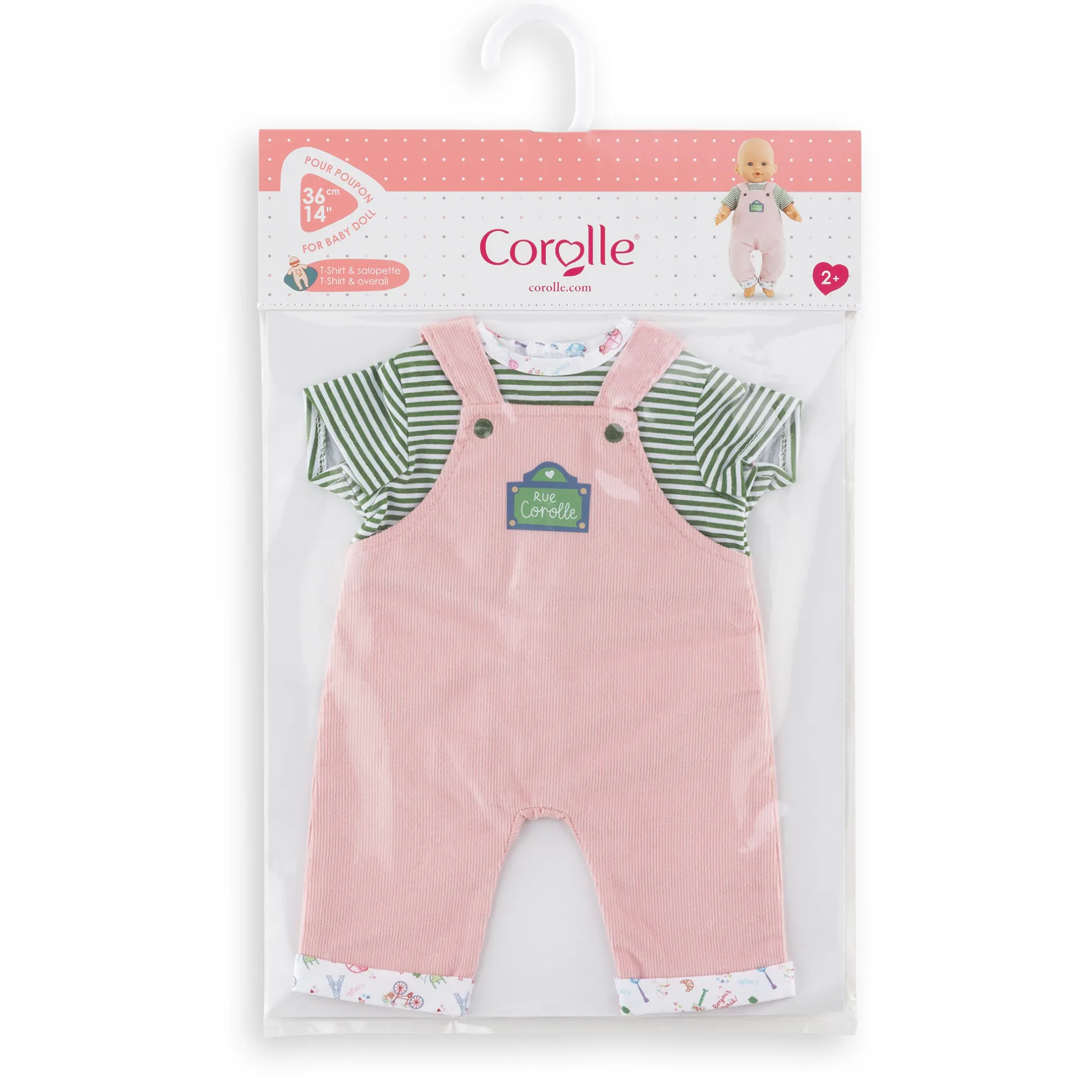 Pour une tenue décontractée, l’ensemble T-shirt et Salopette Week-end à Paris est le vêtement idéal pour les grands poupons de 36 cm mon grand poupon Corolle.