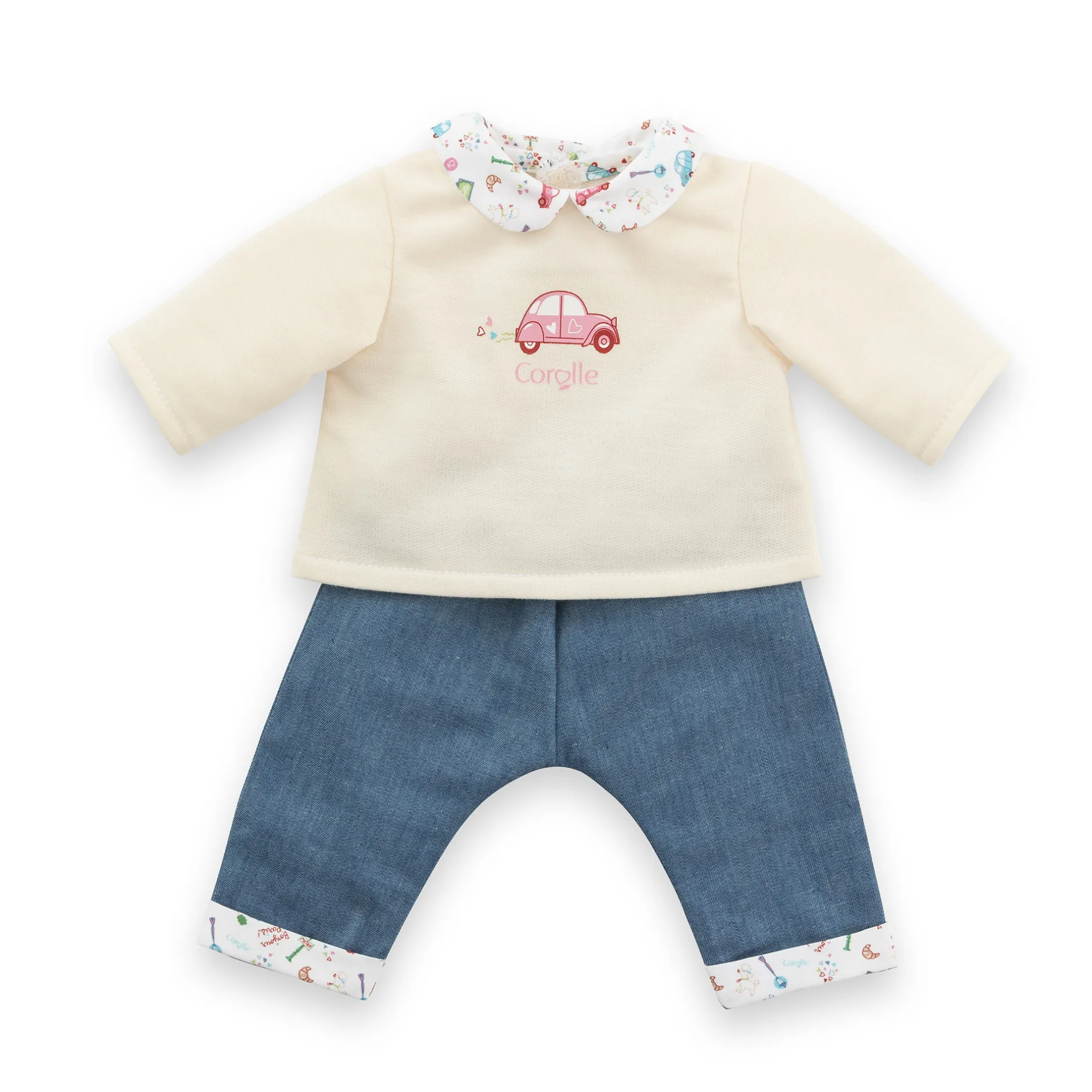 Pour une tenue décontractée, l’ensemble T-shirt Manches Longues et Jean Week-end à Paris est le vêtement idéal pour les grands poupons de 36 cm mon grand poupon Corolle.