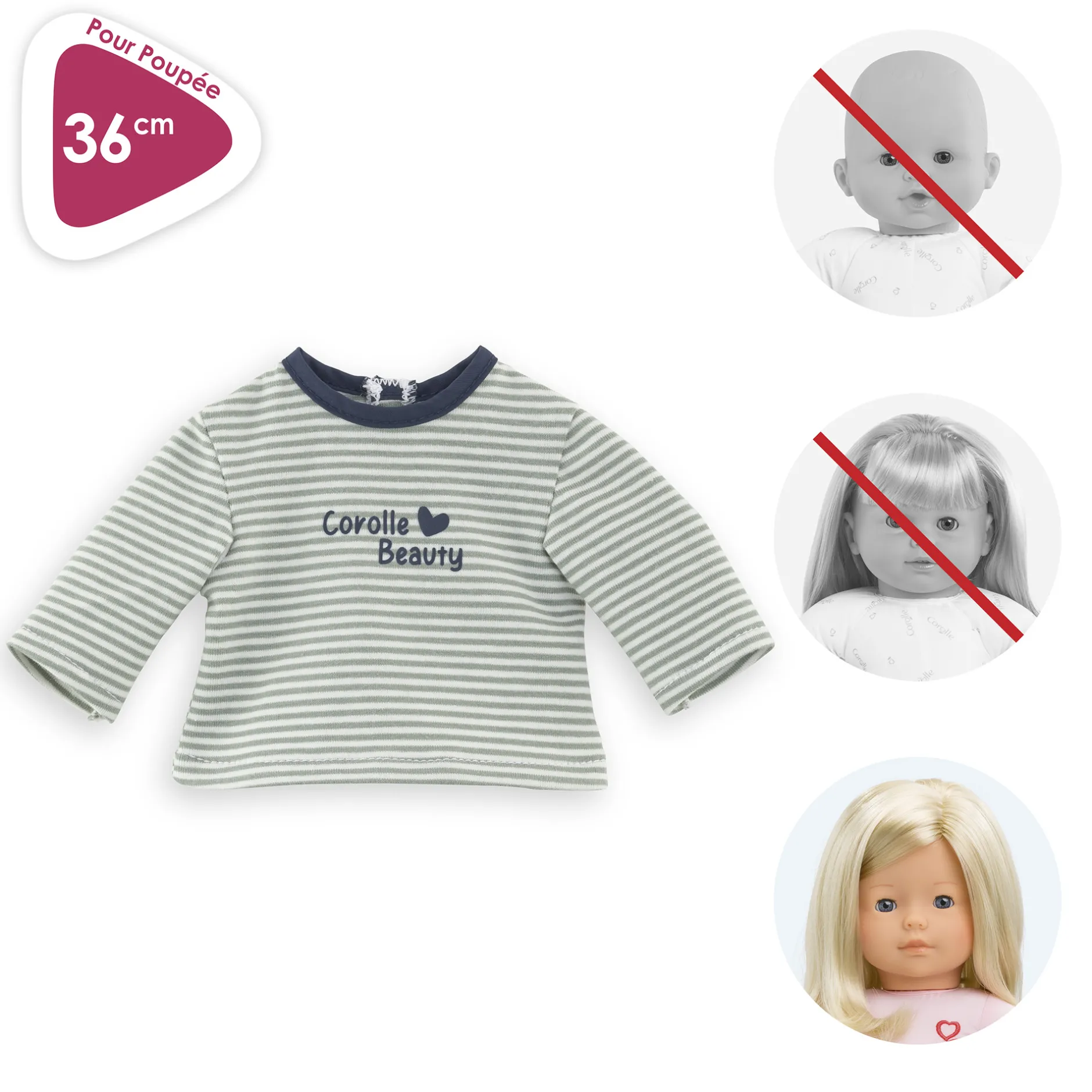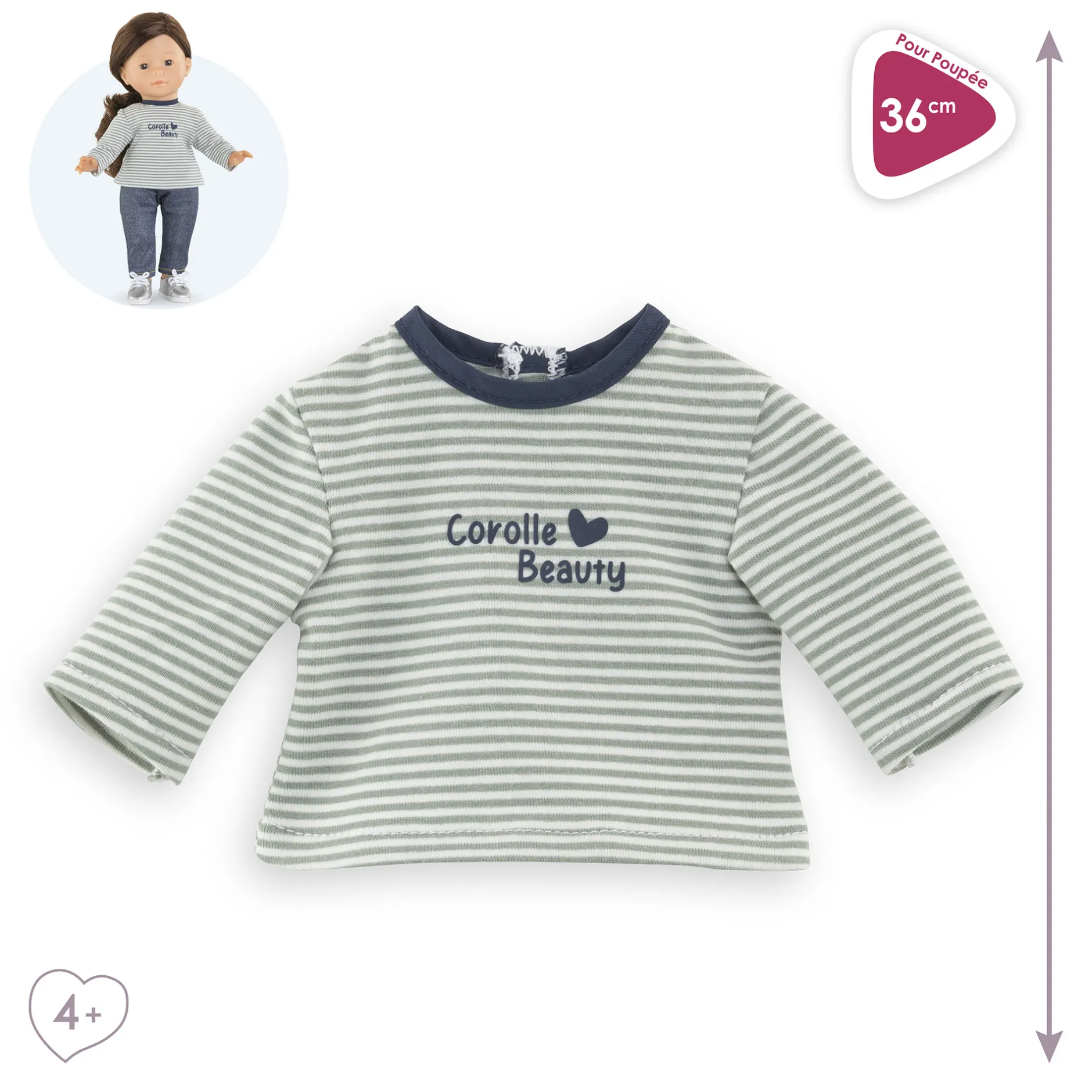 Le T-shirt rayé manches longues pour poupée ma Corolle de 36 cm est à porter en mode casual avec un jean, des leggings ou encore une jupe !